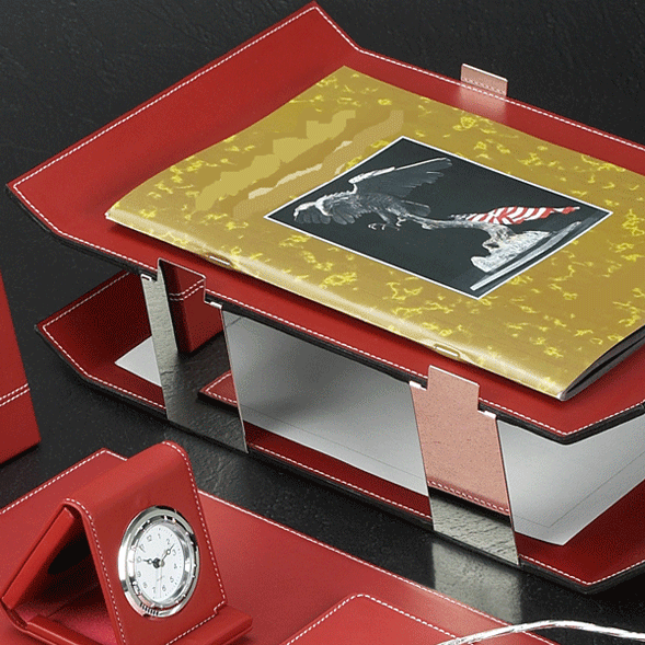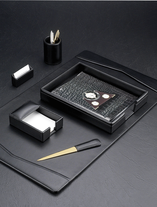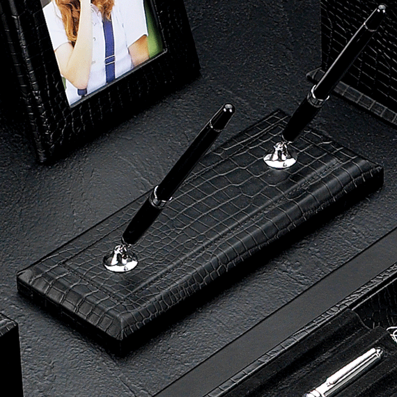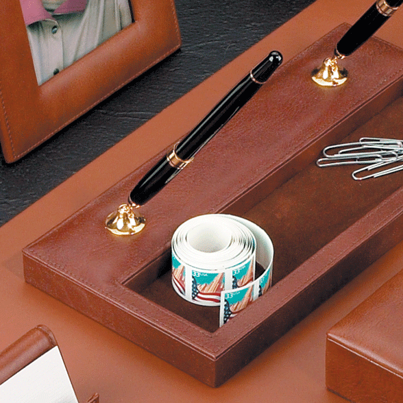 Features : Delightful details for your desktop. Rise above the clutter with the classic beauty of leather! Appropriate for any boardroom. Protects conference table from pen scratches. Fine Florentine Napa leather.